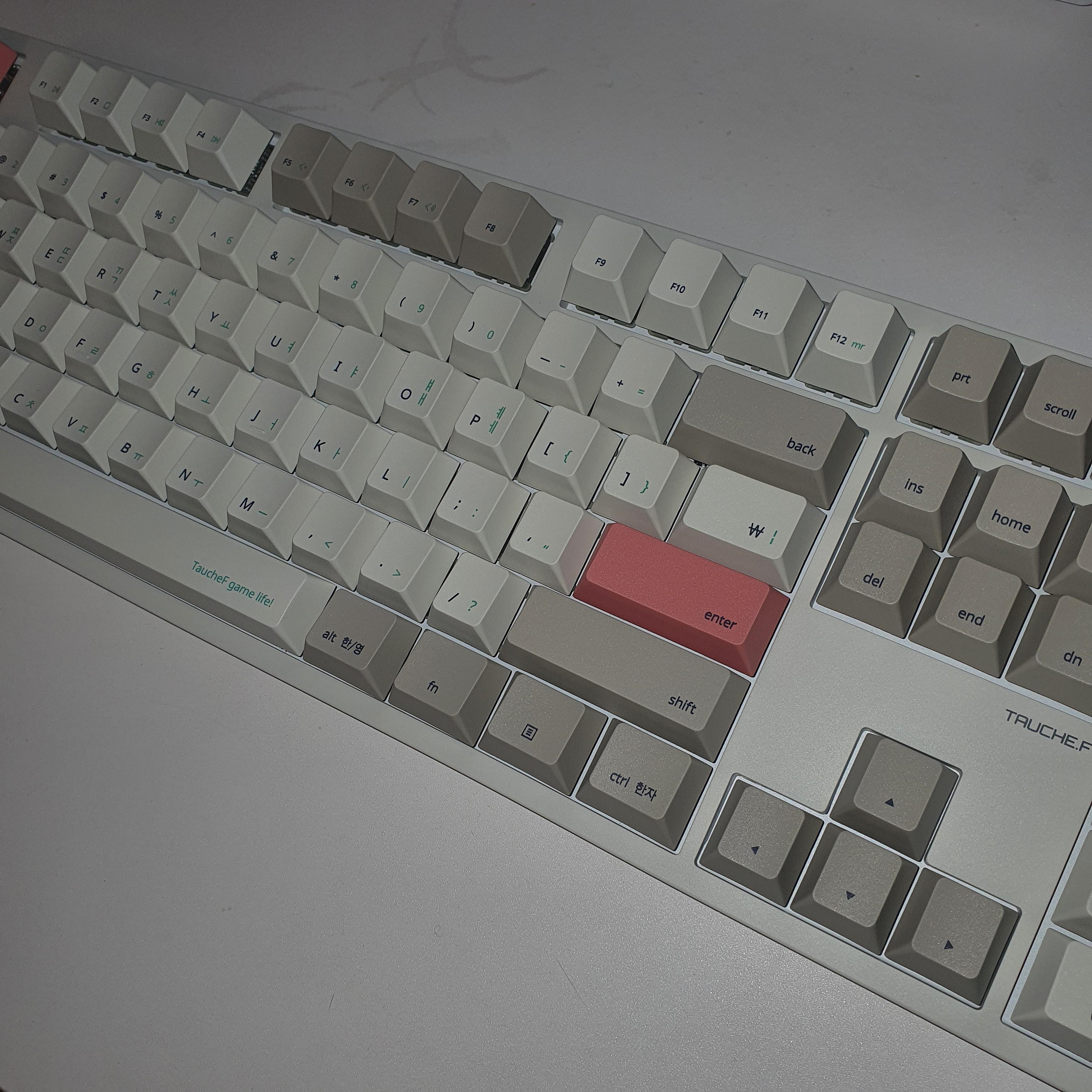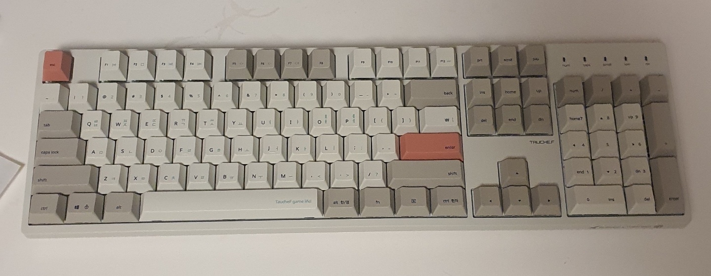 마지막으로 아스팔트 위 경고 표지판 같은 샛노오란 포인트 키캡이 소름 돋게 싫었다.